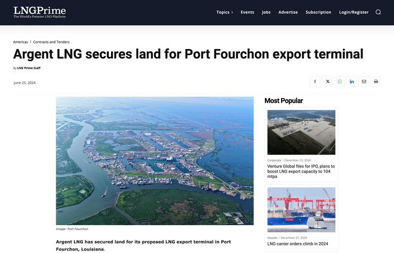 Argent LNG Announces Long-Term Lease with Greater Lafourche Port Commission for Development of up to 20 MTPA Facility