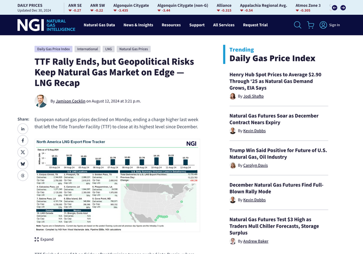 TTF Rally Ends, but Geopolitical Risks Keep Natural Gas Market on Edge — LNG - Argent FERC