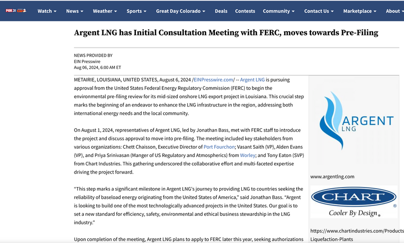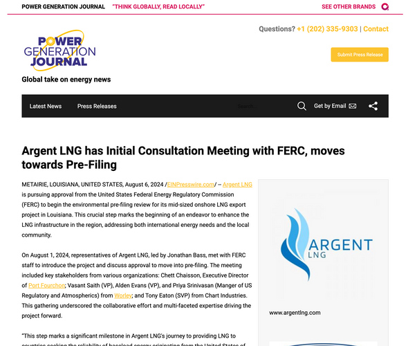 Argent LNG has Initial Consultation Meeting with FERC, moves towards Pre-Filing