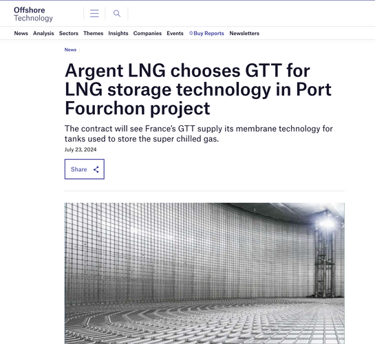 Argent LNG chooses GTT for LNG storage technology in Port Fourchon project
