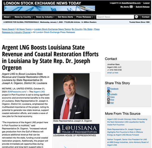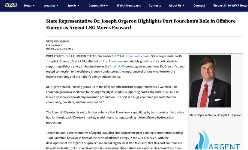 Argent LNG Boosts Louisiana State Revenue and Coastal Restoration Efforts in Louisiana by State Rep. Dr. Joseph Orgeron