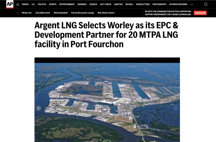 Argent LNG Selects Worley as its EPC & Development Partner for 20 MTPA LNG facility in Port Fourchon