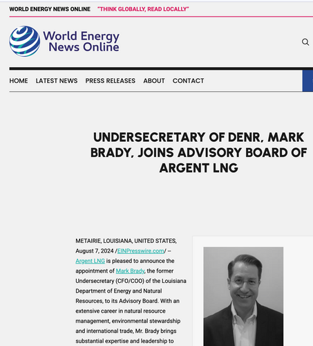 Undersecretary of DENR, Mark Brady, Joins Advisory Board of Argent LNG