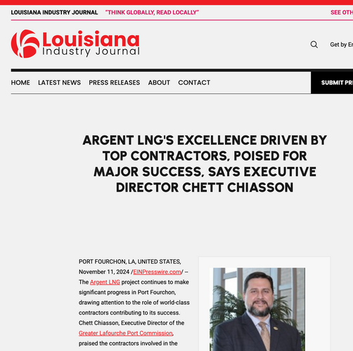 Argent LNG Project to Elevate South Louisiana’s Oil and Gas Sector, Says Lafourche Parish President Archie Chaisson III