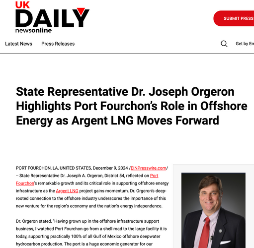 State Representative Dr. Joseph Orgeron Highlights Port Fourchon’s Role in Offshore Energy as Argent LNG Moves Forward