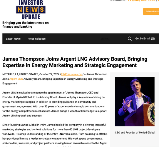 James Thompson Joins Argent LNG Advisory Board, Bringing Expertise in Energy Marketing and Strategic Engagement