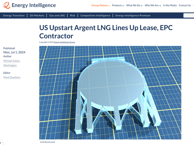 US Upstart Argent LNG Lines Up Lease, EPC Contractor