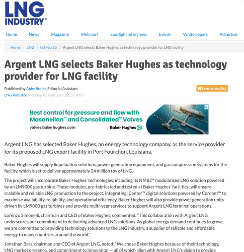 Argent LNG selects Baker Hughes as technology provider for LNG facility