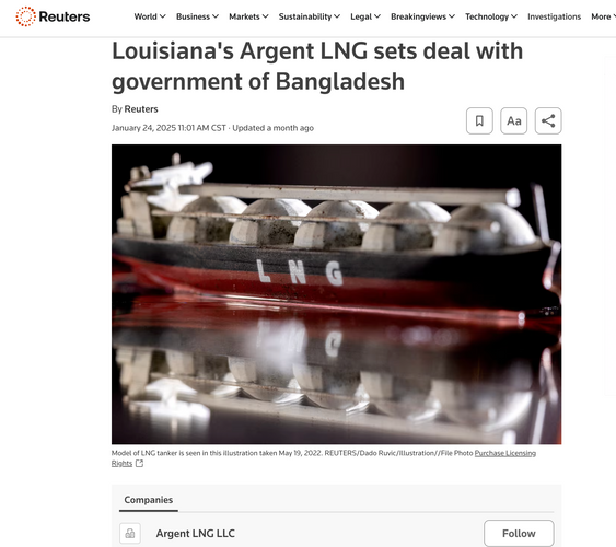 Louisiana's Argent LNG sets deal with government of Bangladesh